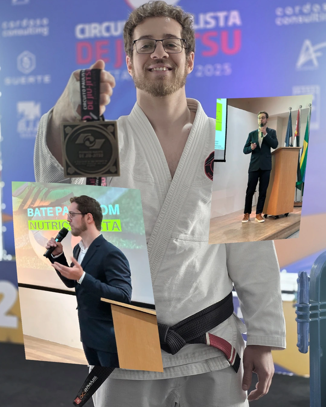Especialista em Fisiologia do Exercício (UNIFESP) e em Saúde Intestinal (Monash University), Murilo une o rigor científico com a prática de quem sabe o que é trabalhar sob pressão e ainda querer render no Jiu-Jitsu.